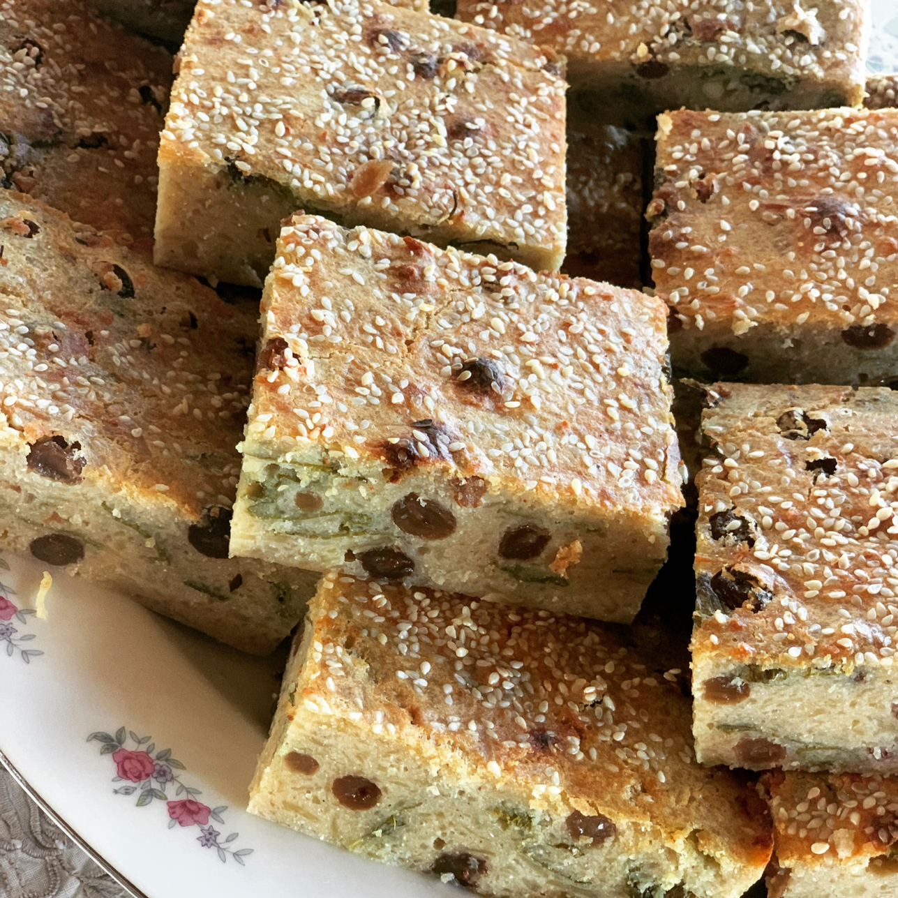 I took my mama’s traditional recipe and added my wholefoods spin on it, to make it gluten-free and maximise nutrient-density. Traditionally, each flaouna is made individually in the shape of a square, but for convenience, I simply pour the batter into a rectangular or square baking tray and cut them up into the desired size after they are cooked.
