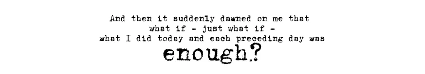 Rather than berate myself for failing yet again to fulfill even 1 thing on the dreaded list, can I dare give myself permission to believe that what if whatever I accomplished today and each preceding day was enough? Especially in today's competitive world where it's so easy to compare yourself to the next person who is seemingly more "successful" on every measure with more Likes, more Followers, more sales, a grander house or bank account.