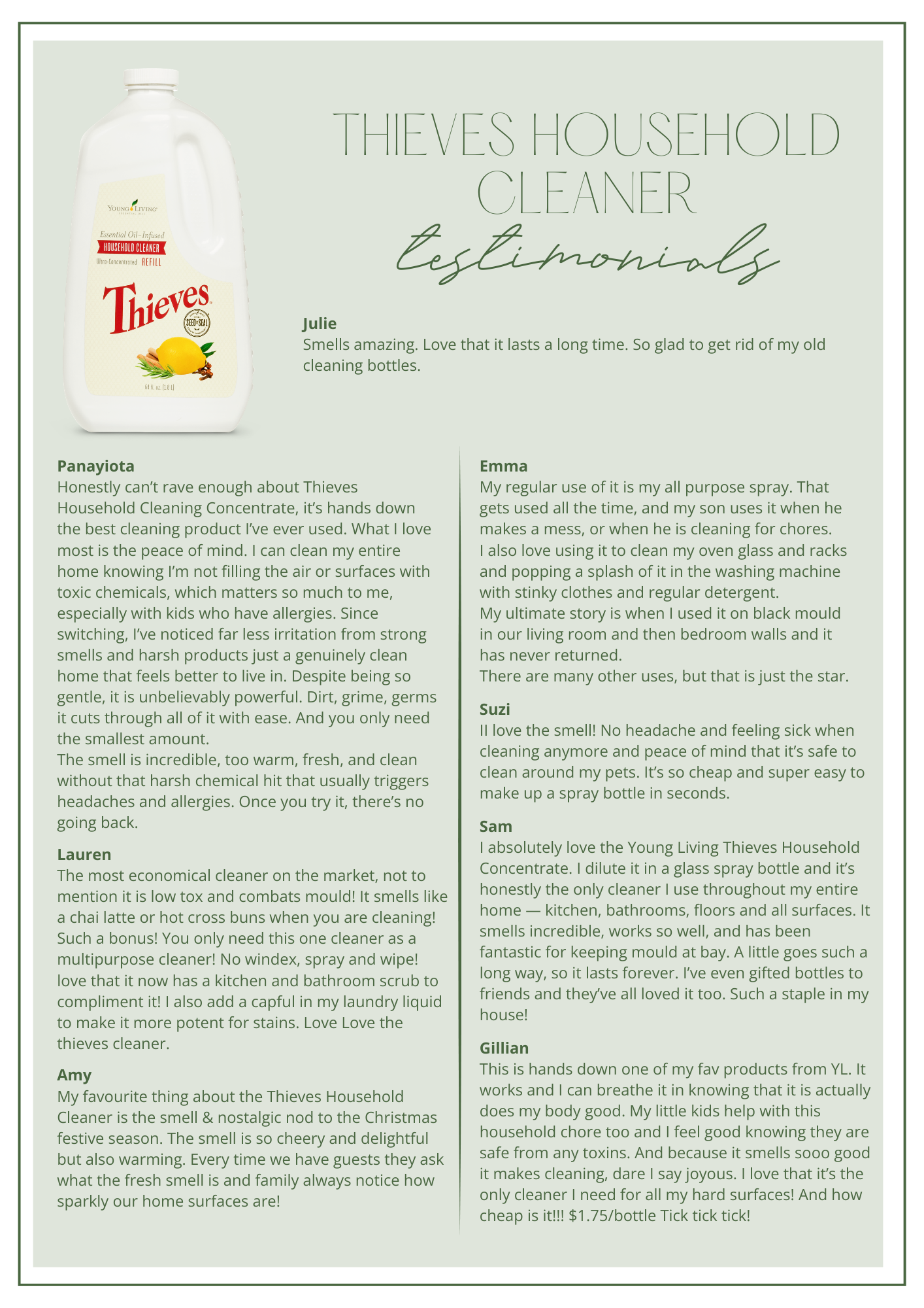 I absolutely loved reading all of your personal testimonials last month on YL’s Theives Household Cleaning Concentrate in the closed Star Anise Essentials FB page – WOW!