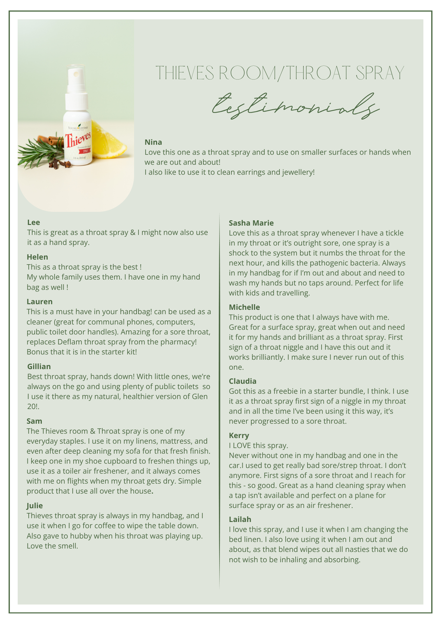 The testimonials confirm that this little product packs a powerful punch. If you have ever sprayed it in your mouth or around you on a plane, you will know what I mean! I used to always lose my voice on long-haul flights – not anymore!